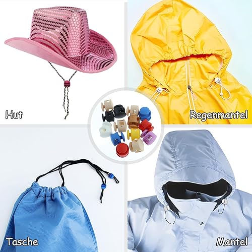 Lot de 14 bloqueurs de cordon de couleurs mélangées à 2 trous, la boucle en plastique en nylon avec boucle à ressort convient à tous les types de vêtements, sacs, cordes de taille, cordes à chapeau