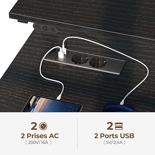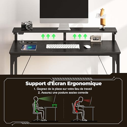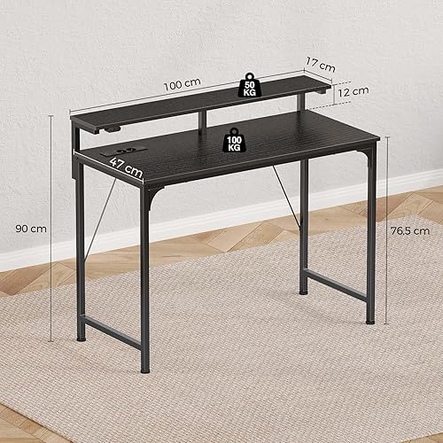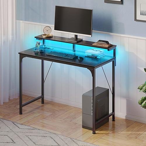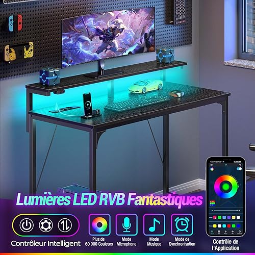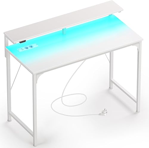 Rolanstar Bureau Blanc, Bureau Gaming avec LED, Prise et Support Écran, Table d’Ordinateur Moderne 100x47 cm pour Chambre et Travail à Domicile