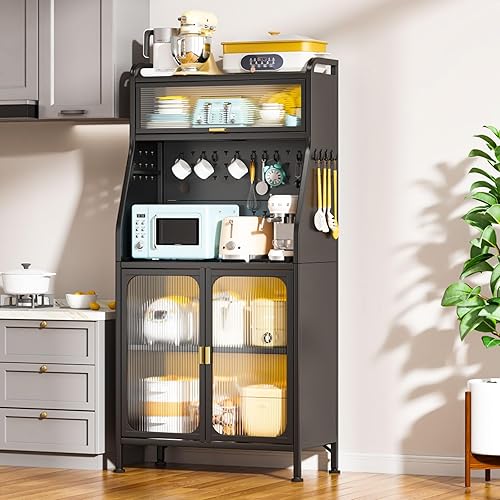 Armoire de cuisine haute - Étagère de cuisine debout - Cabinets de cuisine - Armoire multifonction - Plaque perforée - Étagère en métal - Étagère de cuisine debout - Buffet de cuisine - Expédition
