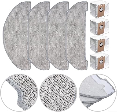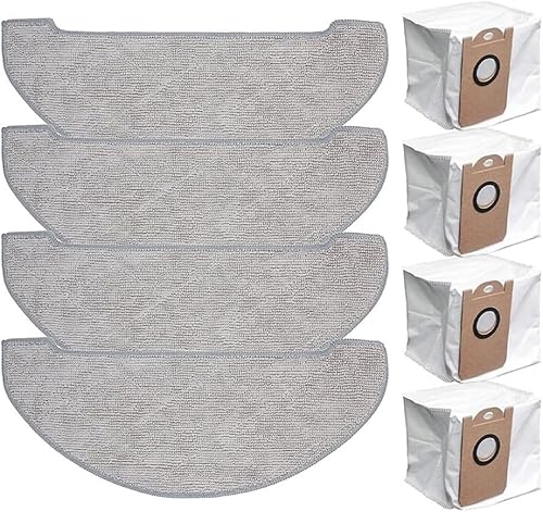 HpLive Vexilar Lot de 4 chiffons et sacs à poussière pour aspirateur robot W11/W7, chiffons de nettoyage en microfibre, 4 chiffons de nettoyage + 4 sacs à poussière