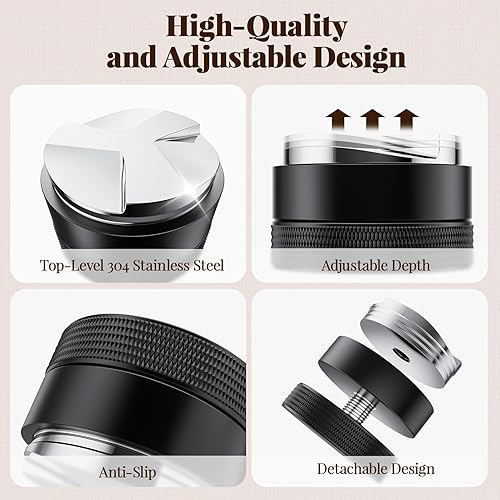 NEUTYPECHIC 51mm Distributeur de Café, Niveleur Espresso Aluminium Tamper 51mm, Accessoires Barista, Outil Barista pour Sage Barista Pro, Sage Barista Express, De'Longhi, avec Porte-filtre 52 mm