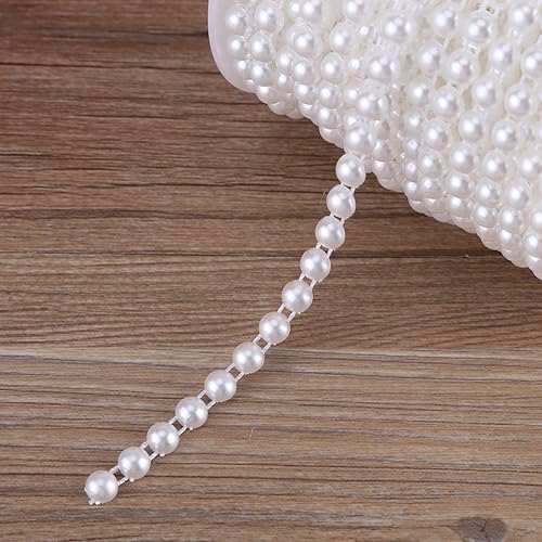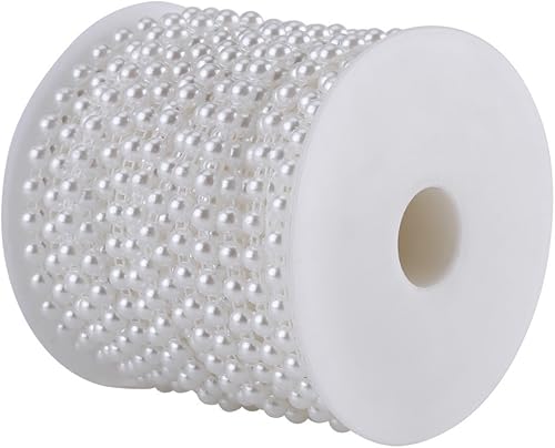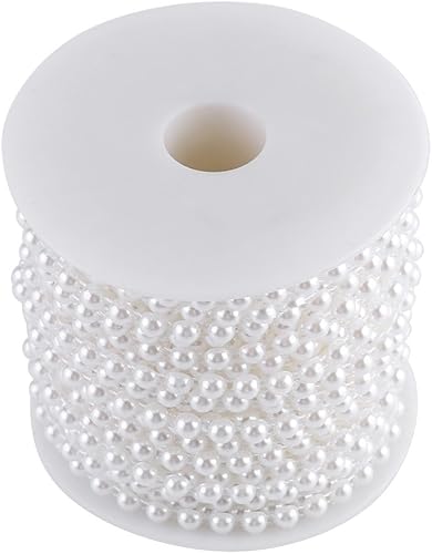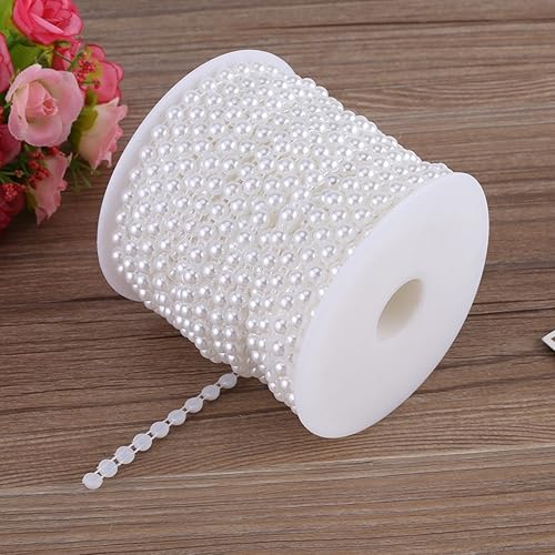 Candeon Perles de Ligne de Coton -25M/Rouleau Double Ligne de Coton Imitation Demi-Rond Perles Perles Guirlande de chaîne pour Mariage(Blanc Pur)
