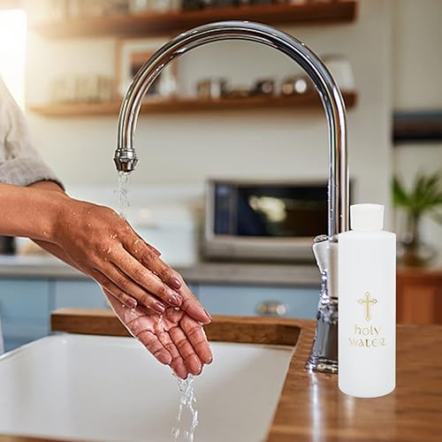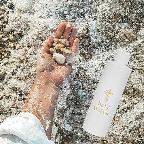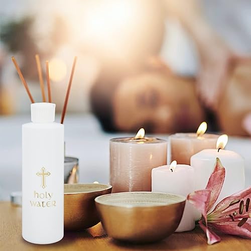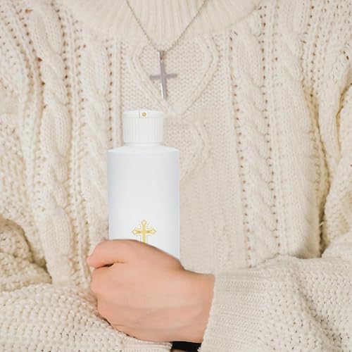 WEBEEDY 5 pièces Bouteilles d'eau Bénite 250 ML/8 oz Blanc avec Croix en Plastique Doré Bouteille d'eau Bénite pour Fournitures D'Église Maison et Voyage(Bouteilles Vides)