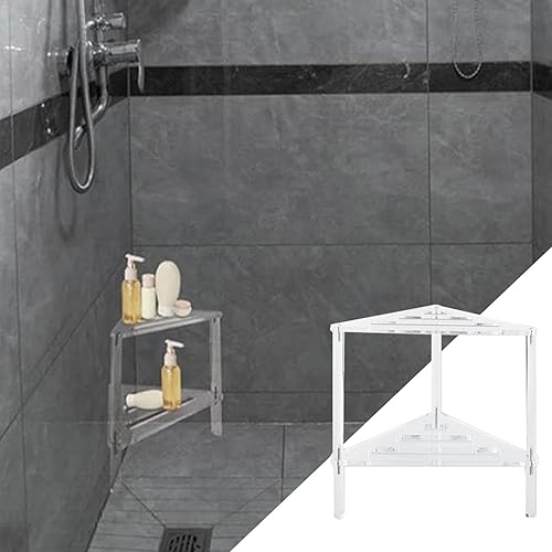 Banc de douche d'angle | Tabouret transparent à double niveau en acrylique – Chaises de bain stables et robustes avec étagère de rangement pour salle de bain et salon