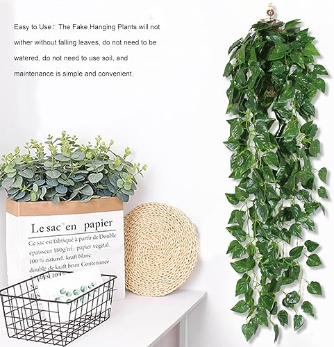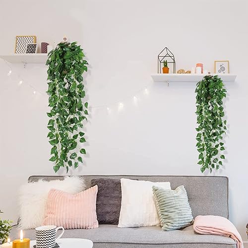 Lot de 2 Lierre Artificiel Plante Pendante Artificielle Plante à Suspendre Artificielle Parfaites pour la Décoration de la Maison, Les Couronnes, Les Mariages et Plus Encore