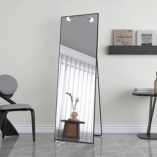 Miroir Pleine Longueur 162x53cm, Miroir sur Pied à Cadre Simple, Grand Miroir Mural HD avec Crochet, reflet en Verre HD Transparent, incassable et léger (Noir,162x53cm)