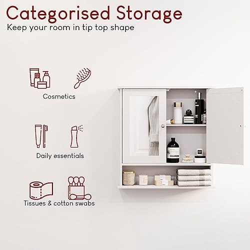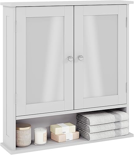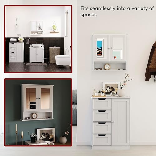 Bath Vida 333374 Priano Meuble de Salle de Bain avec Miroir, Double Porte, Meuble de Rangement Mural, Blanc, H 58 x L 56 x P 13 cm Environ