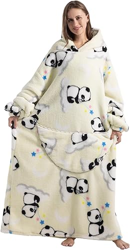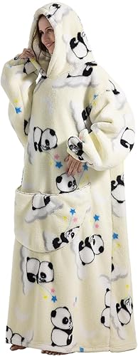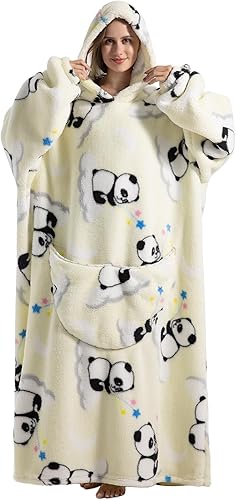 Ksnnrsng - Couverture à capuche très grande, super douce, chaude et confortable pour femmes, hommes et adultes, avec une grande poche (panda sur un nuage, très longue)