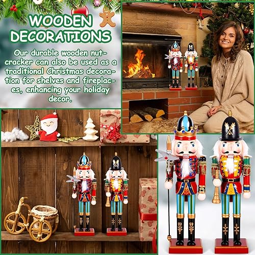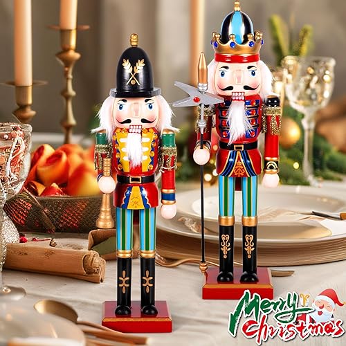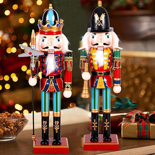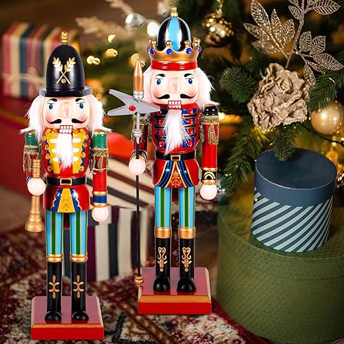 TEWWCEO 2 Grand Soldat Casse-Noisette de Noël en Bois avec Support, 30cm, Casse-Noisettes Soldat de Noël, Casse-Noisette Noël Soldat Figurine, Casse-Noisette de Noël Traditionnels, Décoration de Noël
