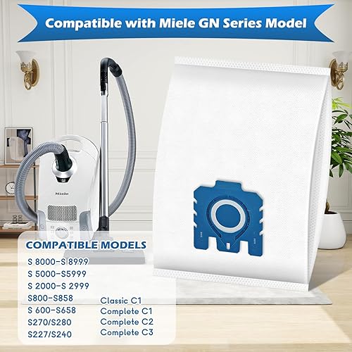 TOSAVGA Lot de 12 Sac Aspirateur pour Miele GN Séries, Compatibles avec Miele GN pour Aspirateurs Classic C1 Complete C2 Complete C3, S2 S4 S5 S6 S8 Series avec 3 + 3 Filtres Air Clean