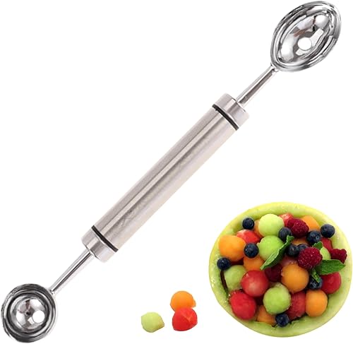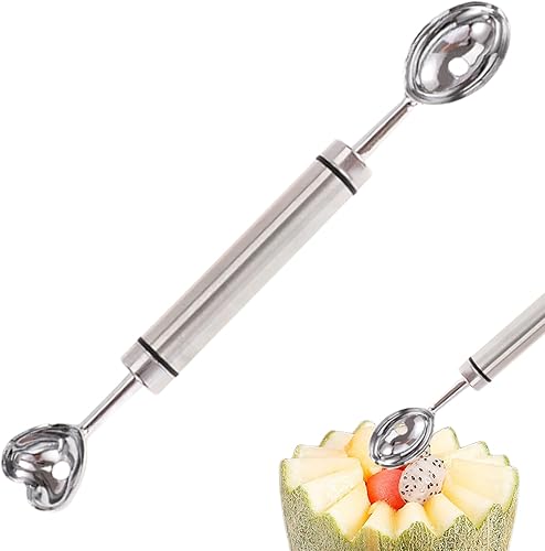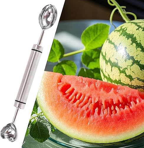 Scoop de baller de pastèque, scoop de fruits et baller | Scoop de baller à double tête pour pastèque,Cantaloup en acier inoxydable Cantaloup de crème glacée Sorbet Ball Spoon pour retirer le noyau