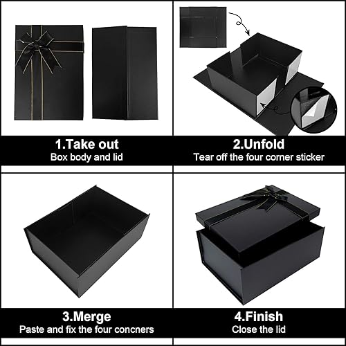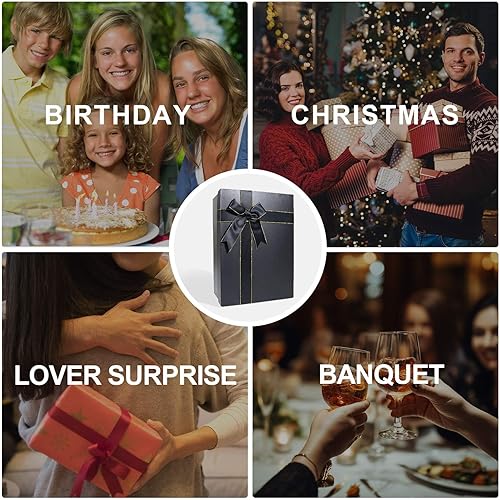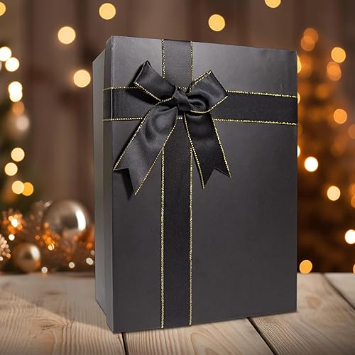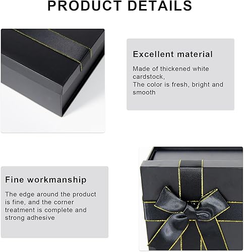 Boîte cadeau avec couvercle, 22,5 x 16 x 8,5 cm, noire, avec cartes de vœux, boîte cadeau, convient pour la fête des pères, la fête des mères, Noël, Pâques, la Saint-Valentin et l'emballage