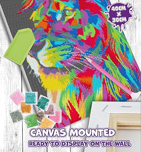 SPLAT PLANET Kit de peinture diamant encadrée Lion, art en cristal, strass encadré, art diamant 5D, décoration murale, loisirs créatifs pour adultes, enfants, 30 x 40 cm