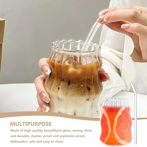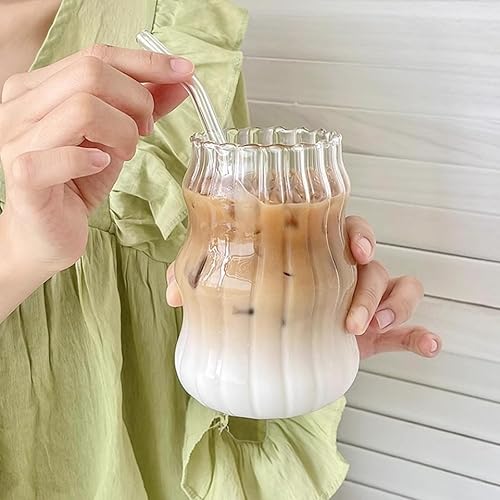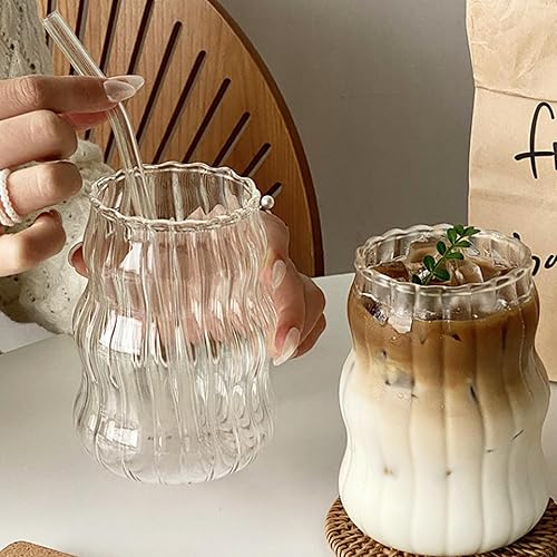 Lot de 4 verres à latte macchiato - 530 ml - Verres à café côtelés - Avec 4 pailles - Verres à cappuccino - Verres à thé - Verres à café glacé - Pour boissons