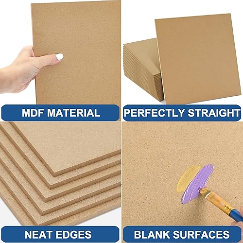 Acidea Lot de 8 Panneaux de Bois MDF pour Travaux Manuels, 30,5 x 30,5 x 3 mm d'Épaisseur, Fibres à Densité Moyenne Non Finis, pour Bricolage et Peinture