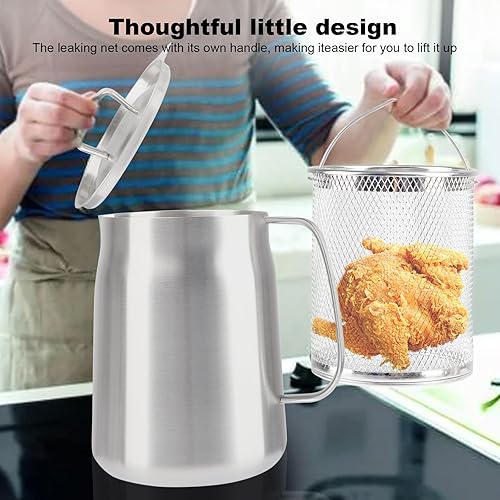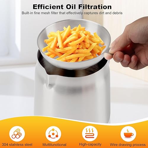 Pot De Filtre à Huile, 2L récipient d’huile en acier inoxydable stockage de graisse en pot avec couvercle Friteuse RéCipient Graisse Passoire Et Filtre à Mailles Fines Filtre à Huile Domestique