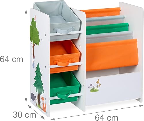Relaxdays Étagère Enfants avec 3 boîtes, 4 Cases et Compartiment, Meuble de Rangement Enfant, HLP : 64x64x30 cm, coloré