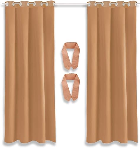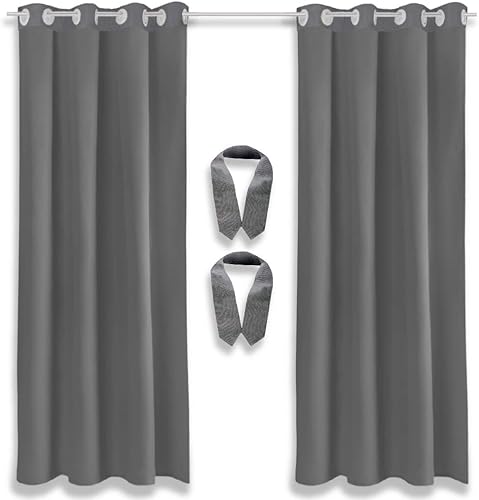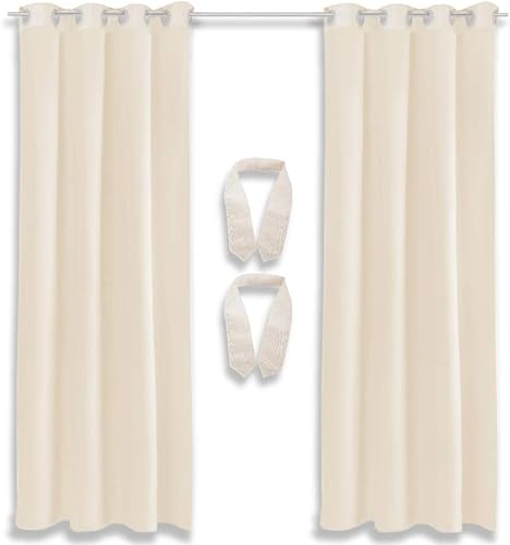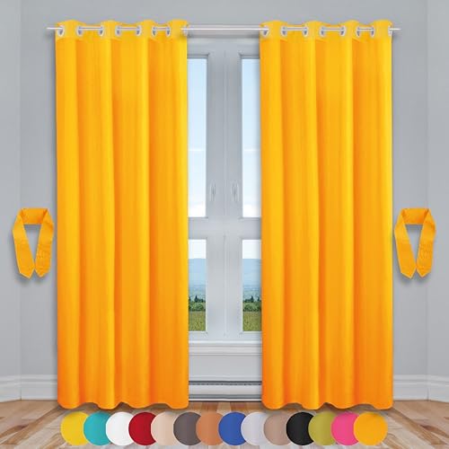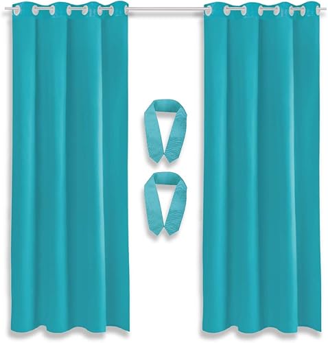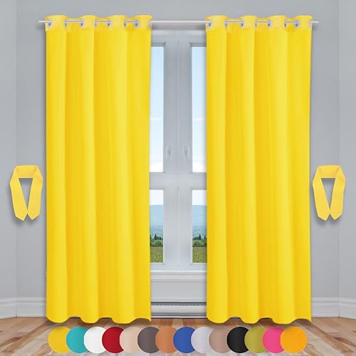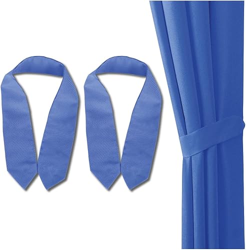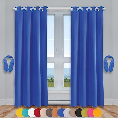 Bestlivings Lot de 2 rideaux décoratifs à œillets avec embrasses et crochets, 140 x 145 cm, Polyester, Bleu roi, 140 x 245 cm
