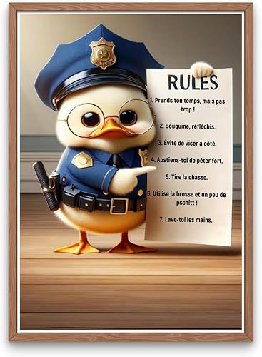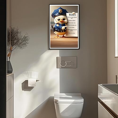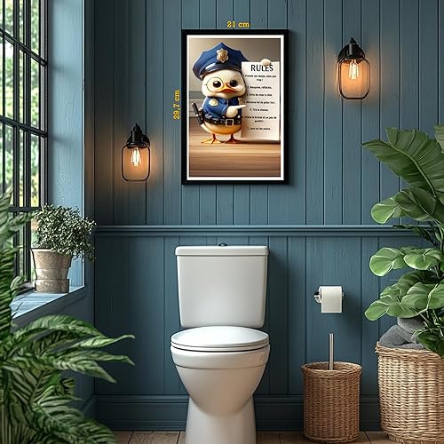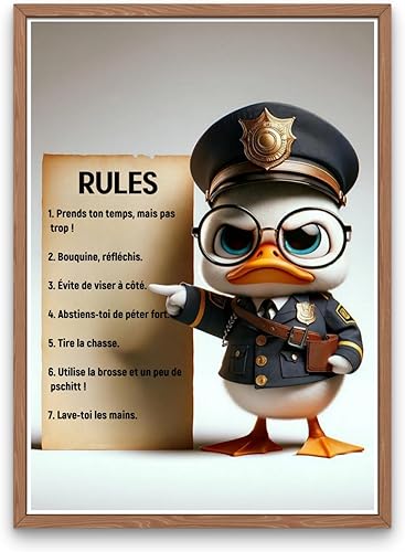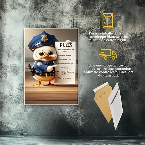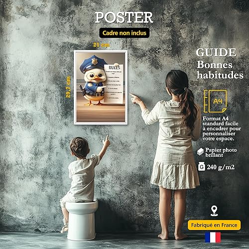 GeekWithAttitude Poster A4 – Guide de Bonnes Habitudes aux Toilettes | Décoration Murale Colorée et Ludique | Affiche Humoristique Canard (Bon flic) | Idéal pour WC | Sans Cadre