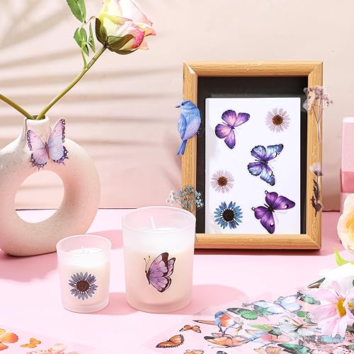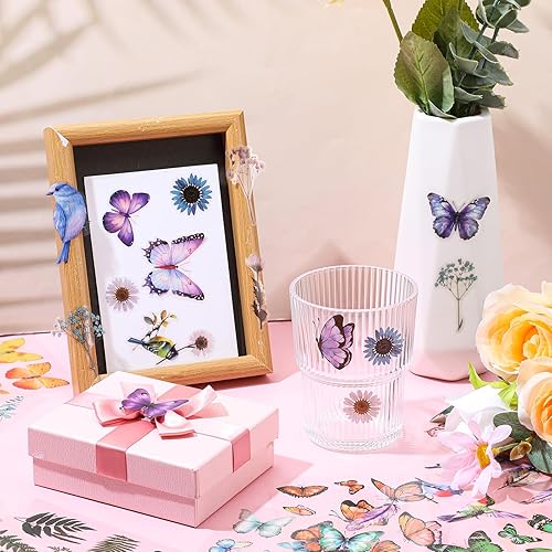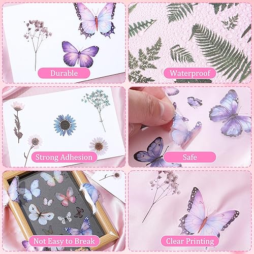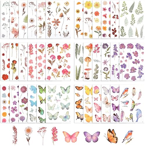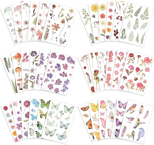 36 Feuilles d'Autocollants Scrapbook Fleurs Papillons Oiseaux Autocollants Album Photo Autocollants Transparents Plantes en PET Autocollants Décoratifs pour Album Photo Journal Scrapbooking