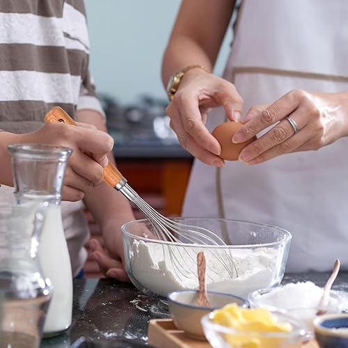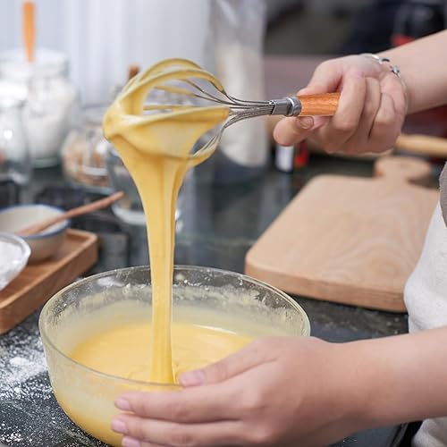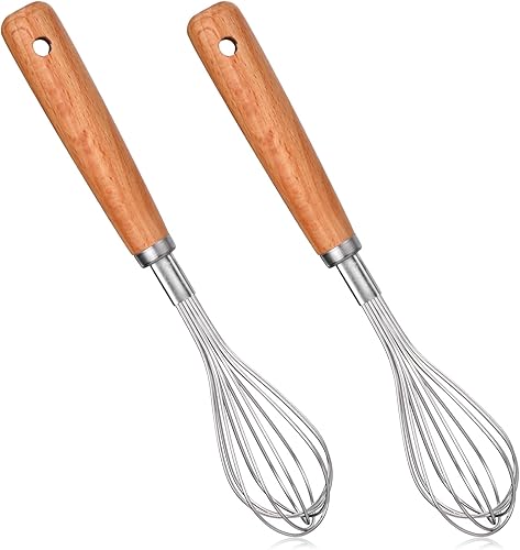 Lot de 2 fouets avec manche en bois en acier inoxydable, fouet à main antiadhésif, pour mélanger, battre, mélanger, œuf, pâte (20 x 4 cm (L x l)
