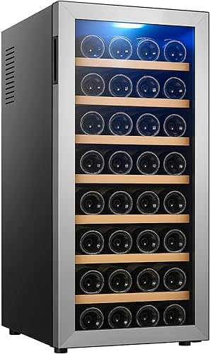 Générique Cave à Vin de Service Inox Premium – 25 ou 32 Bouteilles – Étagères en Bois, Température Réglable 6-14°C – Design Élégant pour Usage Domestique ou Professionnel (25 Bouteilles)