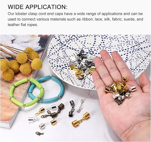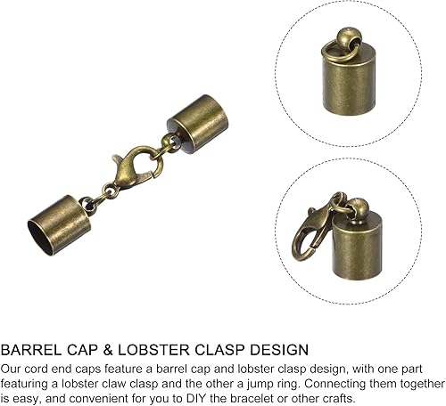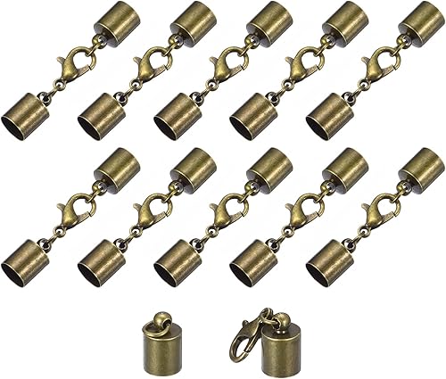 QUARKZMAN 10 Ensembles de 7mm Embouts de Cordon en Cuir avec Fermoirs Mousquetons, Terminaisons en Baril pour la Fabrication de Bracelets en Cuir, Ton Bronze