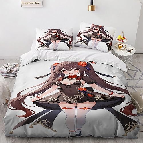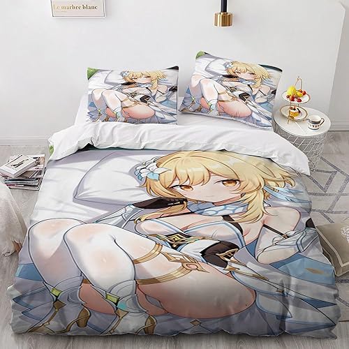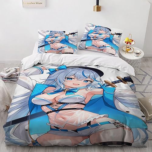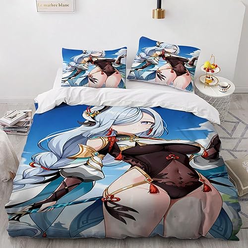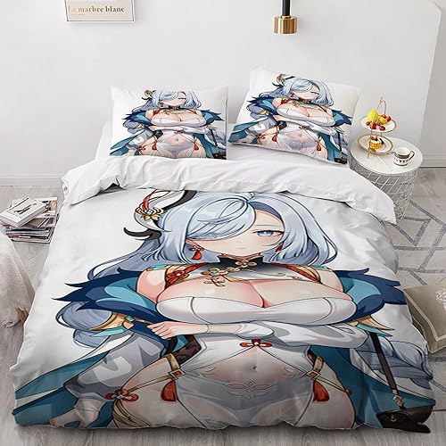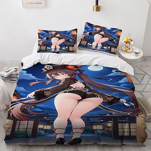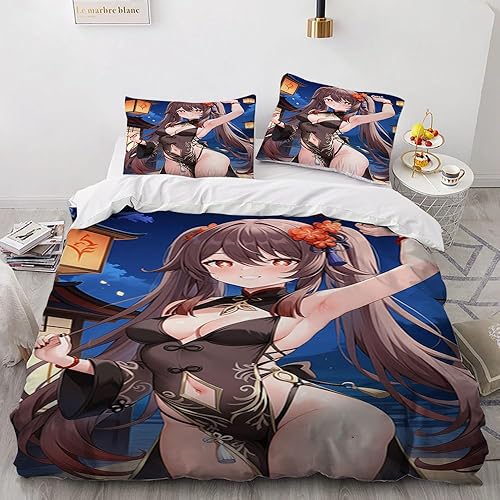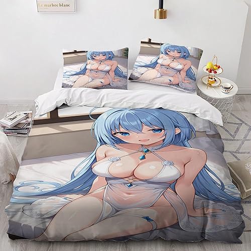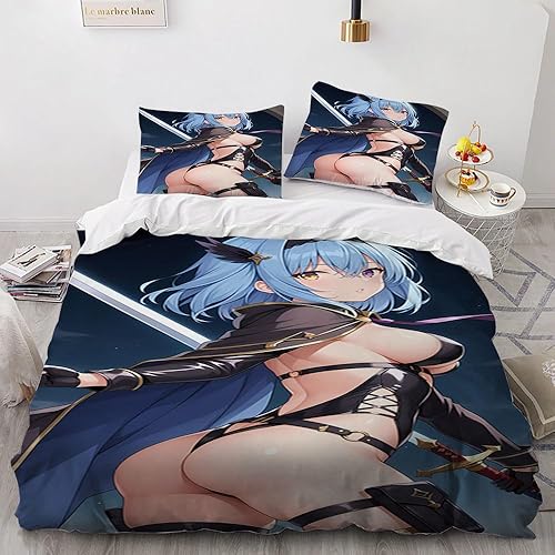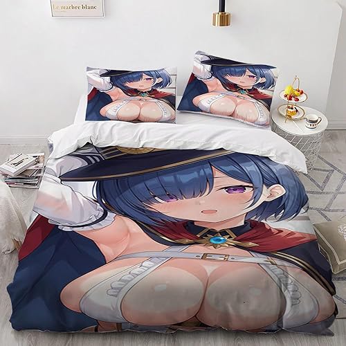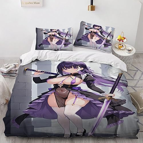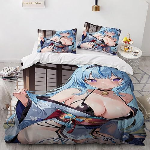 Anime érotique Japanese Housse de Couette 220x240 Parure de Lit 2 Personnes pour lit 180x200 avec Fermeture Éclair pour Adulte Noël literie Luxe été luxueux Microfibre avec 2 Taies d'oreiller 65x65