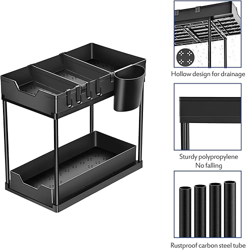 Puricon Lot de 1 Étagère sous Évier avec Tiroirs Amovibles, Grand Rangement sous Évier Rack à 2 Niveaux, Étagère Rangement Cuisine pour Cuisine Salle de Bain Chambre Bureau -Noir