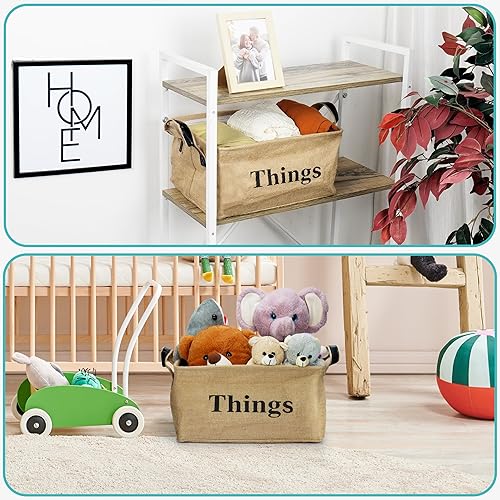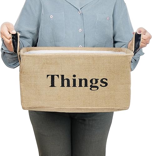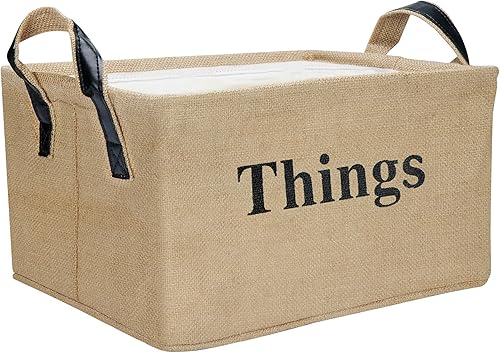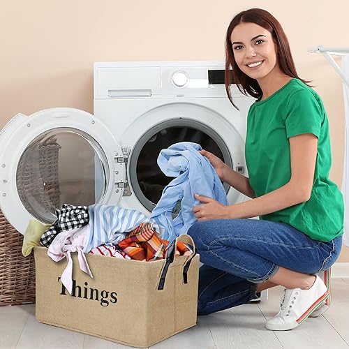 Belle Vous Panier de Rangement en Toile de Jute - 40 x 30 x 20cm - Panier tissé avec poignées pour la maison pour des Jouets Vêtements Livres Couvertures