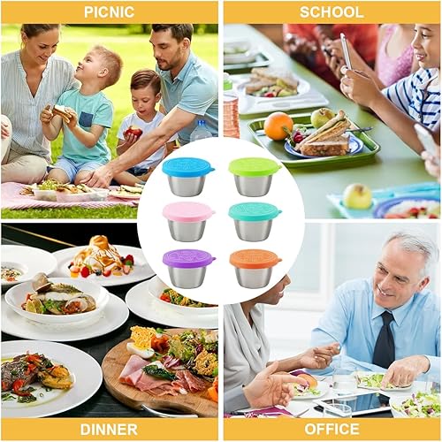 Drufoful 6 Pièces Récipient Vinaigrette avec Couvercles en Silicone, 70ml Petit Récipient à Sauce en Acier Inoxydable Récipient Sauce Salade Boîte Alimentaire Dressing to Go Réutilisable Étanches