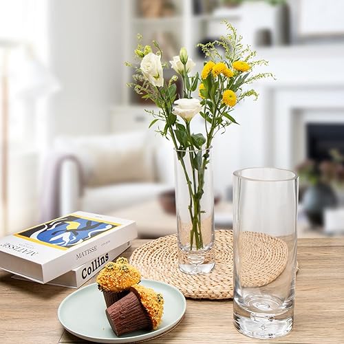 Briful Grand vase cylindrique en verre transparent de 25,5 cm de haut, diamètre de 10 cm, vase à fleurs transparent pour décoration de table et salon