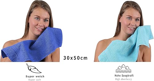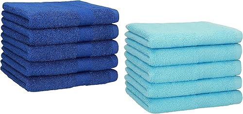 Betz Lot de 10 Serviettes d'invité Taille 30x50 cm 100% Coton Premium Couleur Bleu Royal et Turquoise