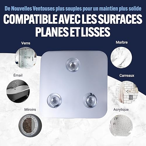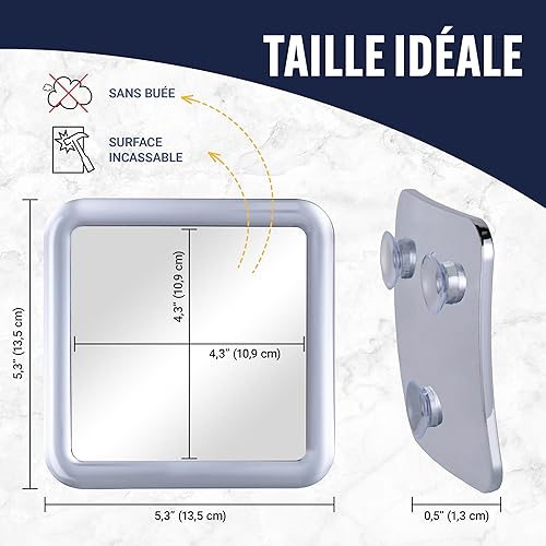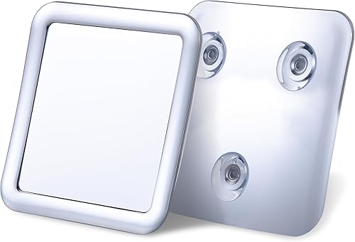 Miroir de Douche Anti-Buée avec Ventouse - Miroir Mural de Salle de Bain Incassable, Idéal pour Le Rasage - Fogless Shower Mirror - 13,5cm x 13,5cm (Chrome)