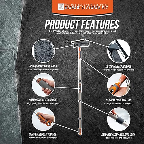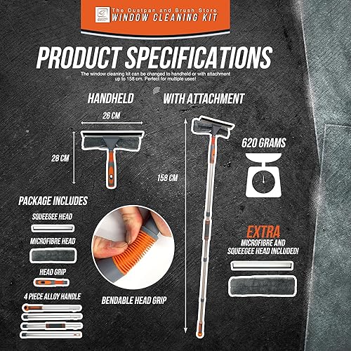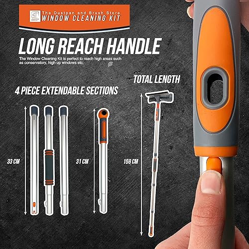 Kit de nettoyage de vitres professionnel - 158 cm - Avec tête pliable et tige en aluminium - Pour fenêtres hautes - Kit complet