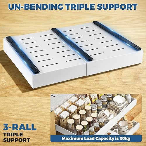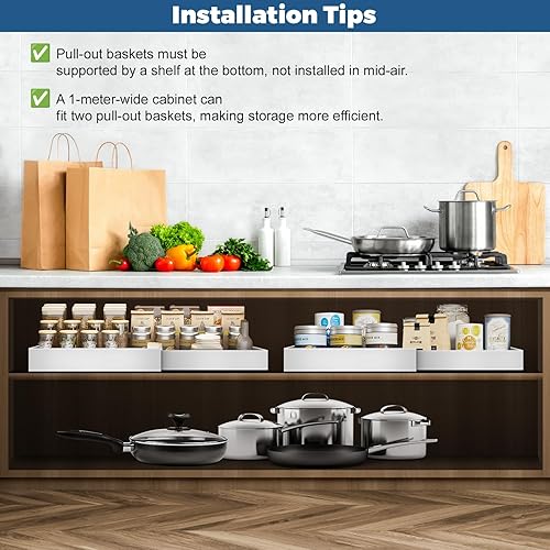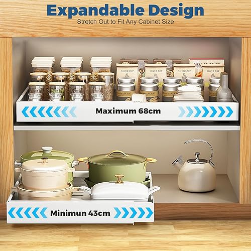 EOJDDPA Lot de 2 tiroirs extensibles télescopiques pour armoires de cuisine, largeur réglable de 42 à 68 cm, pas de perçage nécessaire, avec système de rails pour armoires de cuisine