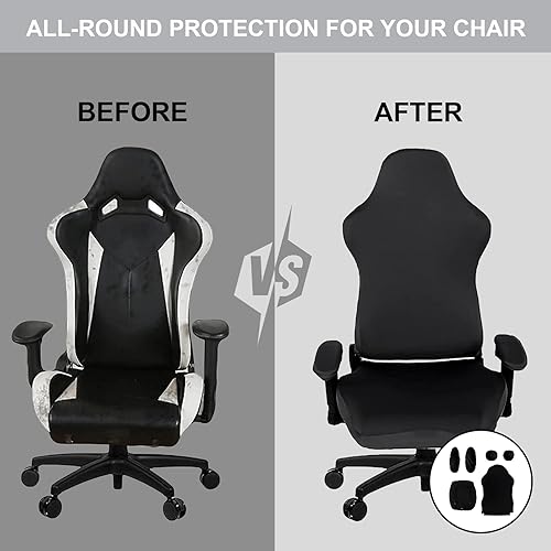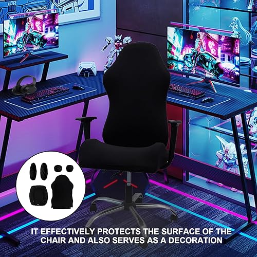 keyxer Lot de 6 Housses de Chaise de Jeu, Housses de Chaise de Jeu, Housses de Chaise Noires avec accoudoirs, Housses de Chaise de Jeu antidérapantes, Extensibles, Amovibles et lavables