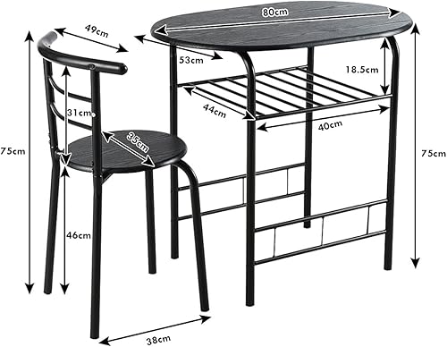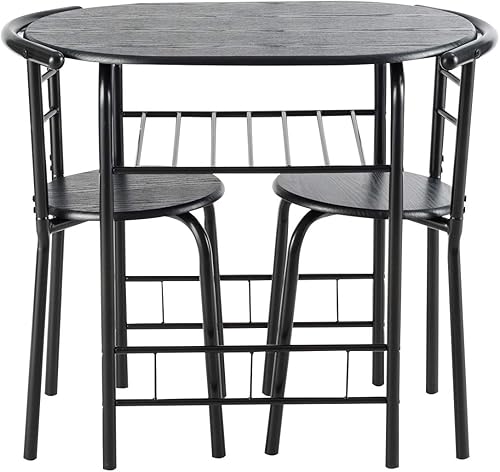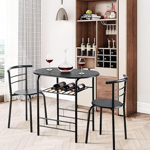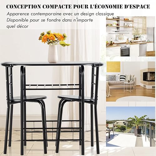 COSTWAY Table de Cuisine avec Chaise pour 2 Personnes, Table Cuisine Petit Espace avec Porte-Bouteilles, Cadre en Métal, Table à Manger Ronde pour Bistro, Jardin, Balcon