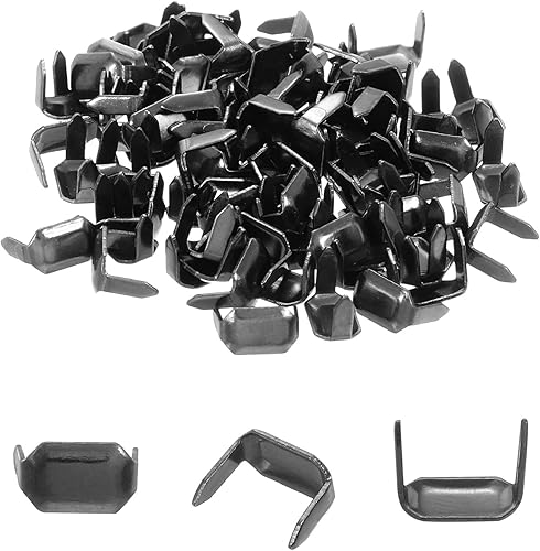 QUARKZMAN 100Pièces Agrafes en Laiton pour Cuir, Attaches à Deux Dents de 8mm pour Maintenir Les Passants de Ceinture en Cuir, Couleur Noir Armé