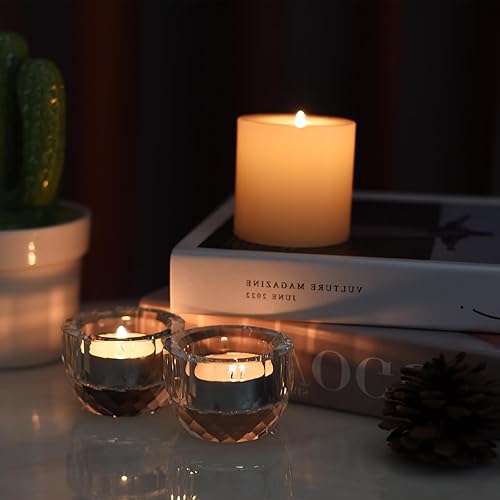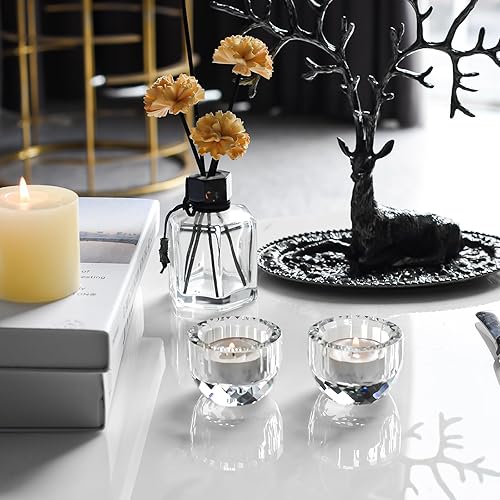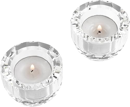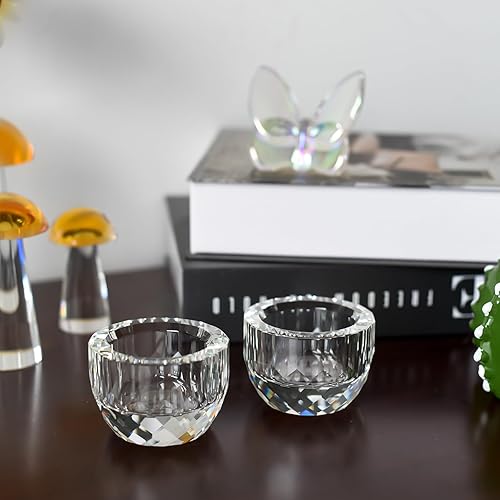 Lot de 2 bougeoirs en cristal de 6,9 x 3,5 cm, bougeoirs en cristal pour table, mariage, pendaison de crémaillère, décoration de table