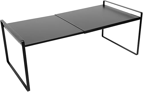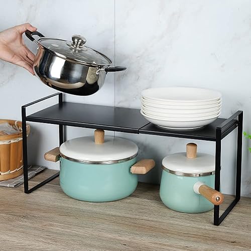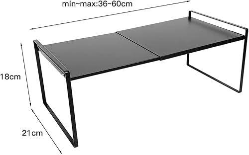 RELOVE Organiseurs de placards Empilables,Étagère de cuisine, étagère à épices,en fer et poignée en bois, convient pour le rangement de la maison et de la cuisine-36-60 * 21 * 18 cm (noir)