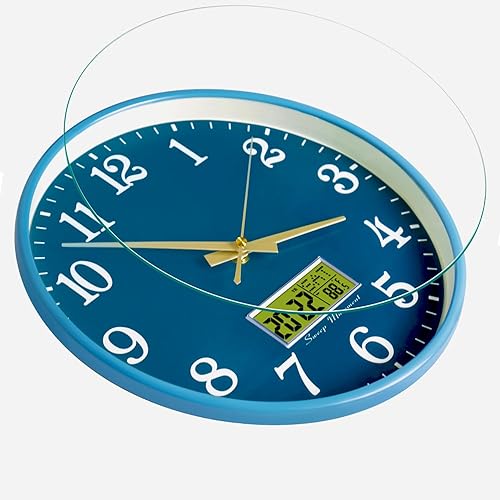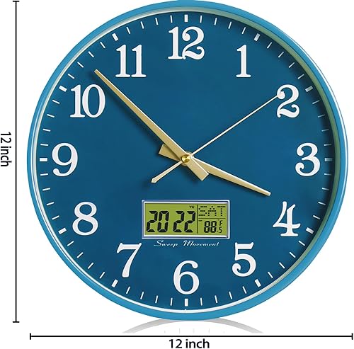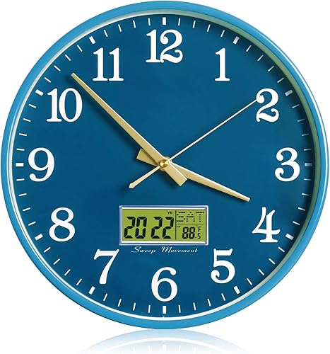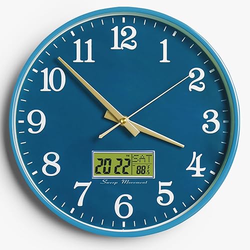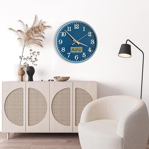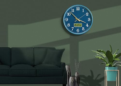 Esteopt Horloge murale, cadran analogique à piles de 30,5 cm avec écran LCD pour calendrier perpétuel et cadran de température F°/C°, silencieux, décoration de maison, chambre, cuisine, bureau