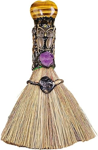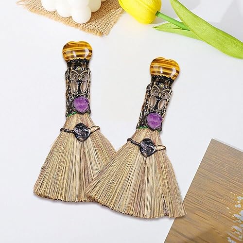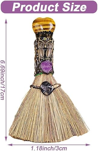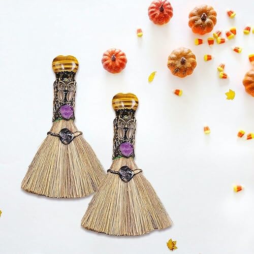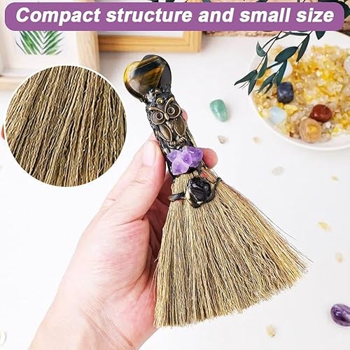 AMOYER Mini Balai d'Autel de Sorcière en Cristal Naturel - Petit Balai Fait Main pour Rituel Wicca - Décoration d'Halloween pour Voiture et Maison