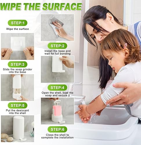 Distributeur Savon Mural Solide Râpe, Contenant de Savon Automatique, Distributeur de Savon Mural, Moulin à Savon Solide, Racleur de Savon et Broyeur de Barres de Savon pour Salle de Bain, Cuisine