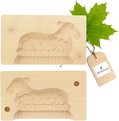 HOFMEISTER® Moule à beurre pliable, 2 pièces, agneau, 14 cm, fabriqué à la main en Allemagne, moule à beurre pour décorer & orner, modèle à beurre hygiénique, en bois d'érable local