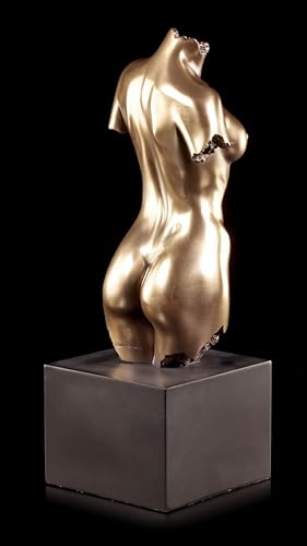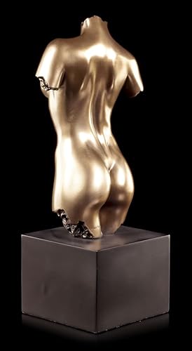 Figuren Shop Noble Femelle Statue Nu - Torse sur Noir Monolith Veronese Statue de Bronze-Optique