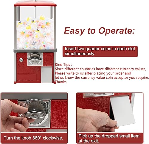 YMAOMAO Distributeurs automatiques pour Les Entreprises, Distributeur Commercial de Bonbons, Distributeur Automatique de Capsules avec serrures pour Jouets à Capsules de 4,5 à 5,5 cm de diamètre,Red