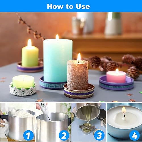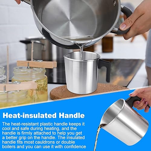 skytowards Pot de Fusion de Cire de Bougie, 1,2L Pot de Fabrication de Bougies Faire Verser Pot avec Poignée Résistante à La Chaleur avec 1 Cuillère pour l’artisanat de Bougie et de Savon à La Maison