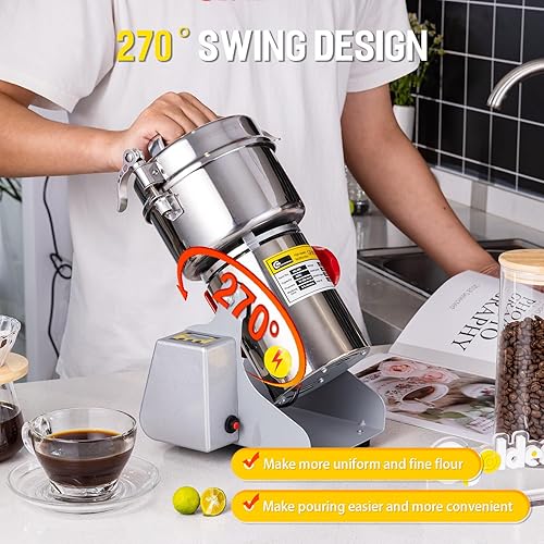 CGOLDENWALL LED Affichage Moulin à Épices Électrique 800g Broyeur à Sèches Grains Herbe Céréales Café, Haute Vitesse 28000RPM/ 2400W Moteur avec Minuterie, Contre Surcharges(Swing Type)