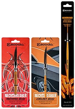 ESCODA Set 3 Pinceaux Pinstriping - N.8,4,1 Plat Biseauté Sortie Longue Rond Pointu Necksbreacker Pinstriping Longliner Détails Brosses Professionnelles Fait à la Main à Barcelone.